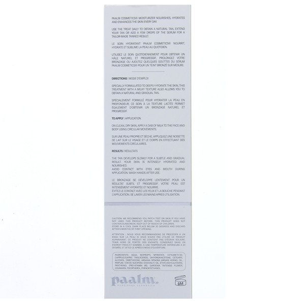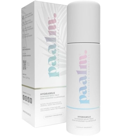 Hydramilk de la marque Paalm Cosmetics est un lait hydratant pour hydrater en profondeur la peau du visage et du corps. Il permet d'illuminer le bronzage et de le prolonger. Pour intensifier le bronzage, mélanger Hydramilk avec quelques gouttes du sérum autobronzant.