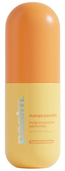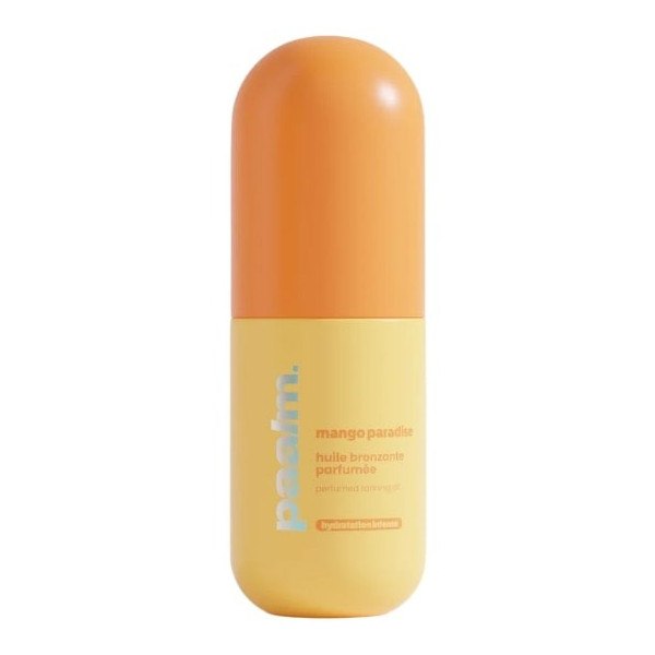 Avec ses 4 huiles précieuses et sa richesse en bêta-carotène, l'Huile Bronzante Parfumée Mango Paradise de la marque Paalm Cosmetics permet d'obtenir un bronzage rapide et intense, tout en hydratant et adoucissant la peau. Elle peut s'utiliser sur le visage et le corps.