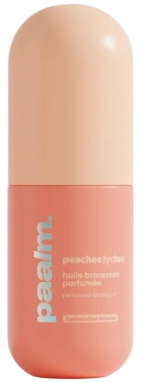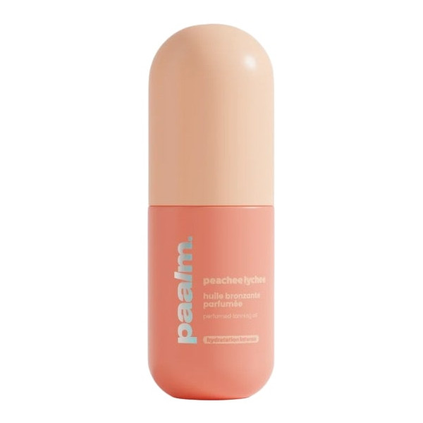 La marque Paalm Cosmetics propose l'Huile Bronzante Parfumée Peachee Lychee, une formule contenant 4 huiles précieuses et enrichie en bêta-carotène pour un bronzage rapide, intense, et une peau hydratée et douce. Elle convient à la peau du visage et du corps.