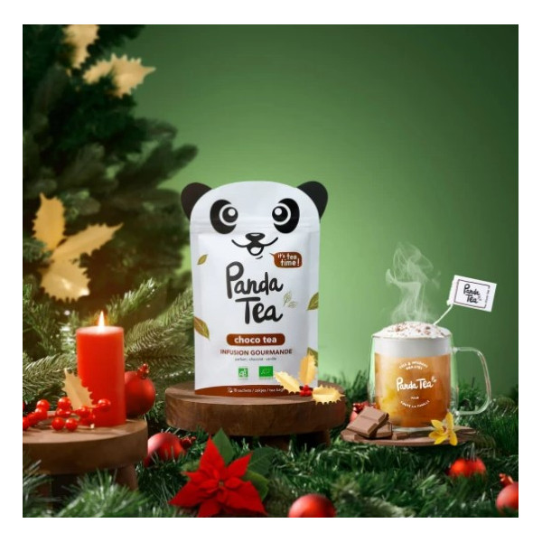 L'Infusion Choco Tea Bio de la marque Panda Tea est un thé aux notes de cacao et de vanille pour une pause gourmande et réconfortante.