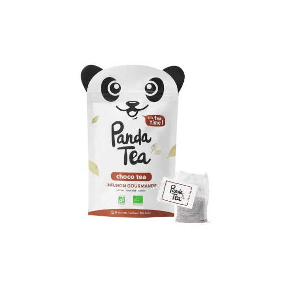 Infusion Choco Tea Bio x18 sachets de Panda Tea se démarque par ses délicats arômes de vanille et de cacao qui offrent aux adeptes du chocolat une manière de se faire plaisir en dégustant une boisson chaude réconfortante.
