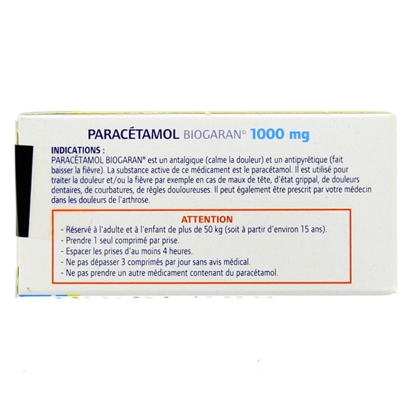 Dans les douleurs intenses, la posologie maximale peut être portée à 1 g de paracétamol, 4 fois par jour, uniquement sur avis médical. - Enfant de plus de 27 kg : 60 mg par kg et par jour, soit 15 mg par kg toutes les 6 heures ou 10 mg par kg toutes les 4 heures. A titre indicatif :