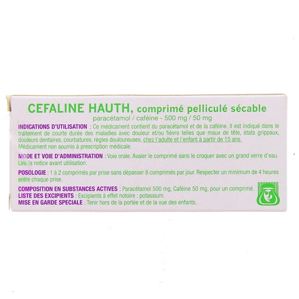 Defaline Hauth contient du paracétamol et de la caféine, indiqué en cas de douleurs et fièvre.