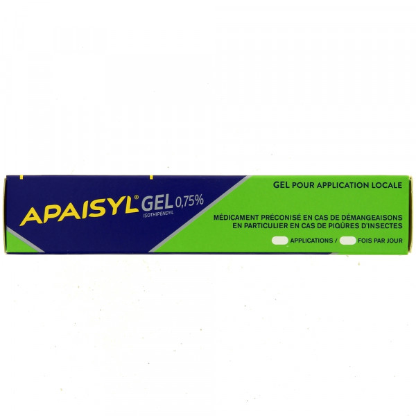 ApaisylGel est un médicament sous forme de gel préconisé en cas de démangeaisons en particulier en cas de piqûres d'insectes.