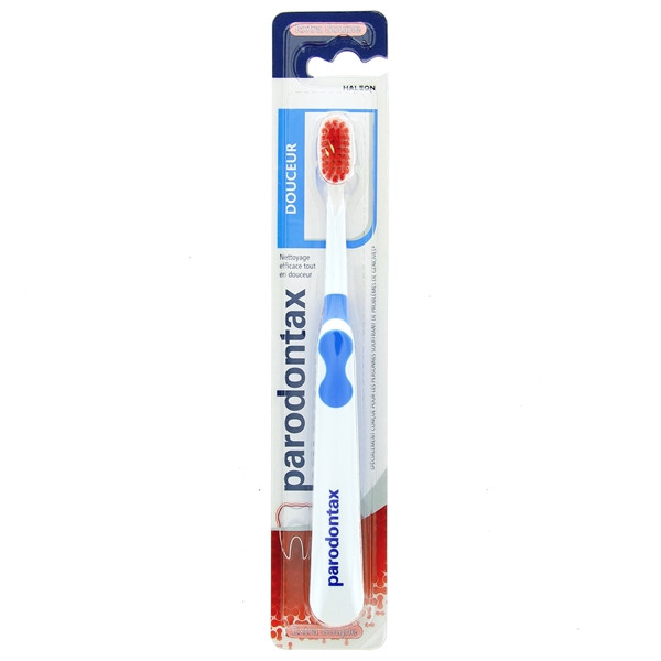 La brosse à dents Douceur Ultra Souple de la marque Parodontax a été spécialement développée pour les personnes qui saignent occasionnelle des dents. Elle assure un nettoyage efficace et en douceur des dents, en éliminant la plaque dentaire tout en respectant les gencives.