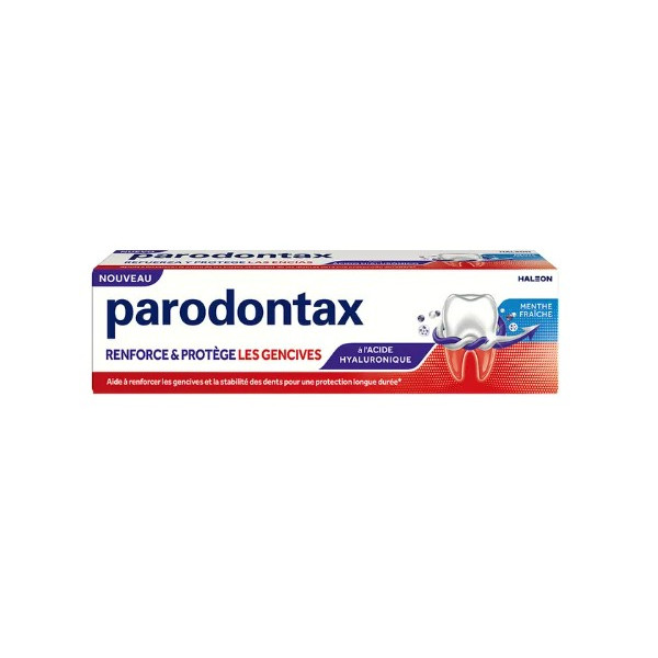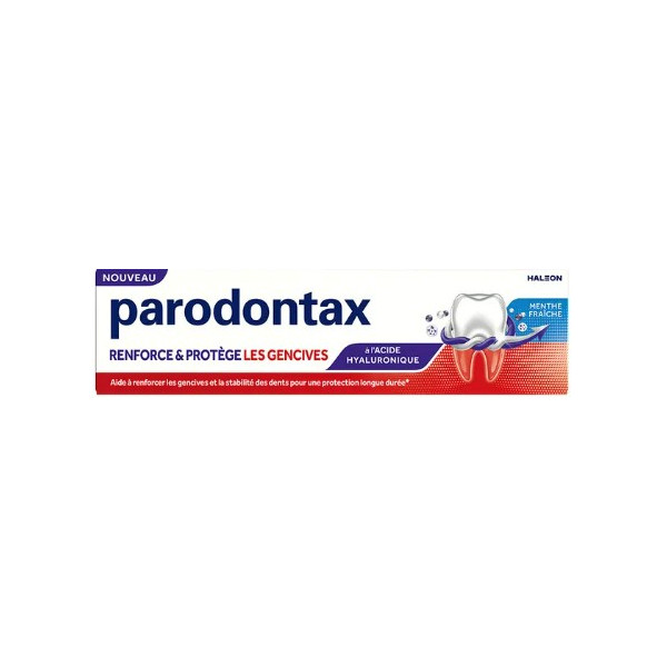 Le Dentifrice Renforce & Protège les Gencives de Parodontax est un dentifrice quotidien qui contient de l'acide hyaluronique pour aider à renforcer les gencives et la stabilité des dents.