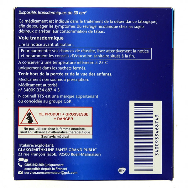 | Nicotine libérée/24 h | 7 mg | 14 mg | 21 mg |