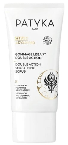 Clean Advanced Gommage Lissant Double Action Bio de la marque Patyka offre une double exfoliation, enzymatique et mécanique, pour lisser et affiner le grain de peau tout en réduisant les pores afin de stimuler l'éclat et d'unifier le teint.