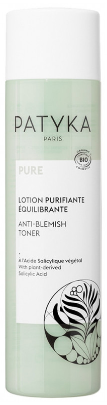 Pure Lotion Purifiante Équilibrante Bio de la marque Patyka élimine le maquillage des peaux mixtes à grasses tout en réduisant les brillances et l'apparence des pores. La peau est purifiée et lissée, les pores resserrés et les excès de sébum éliminés.