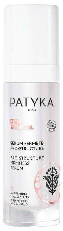 Lift Essentiel Sérum Fermeté Pro-Structure Bio de la marque Patyka offre une triple correction anti-âge pour restructurer la peau et réduire les signes de fatigue. Ce sérum réduit visiblement les rides, raffermit la peau et ravive l'éclat du teint.
