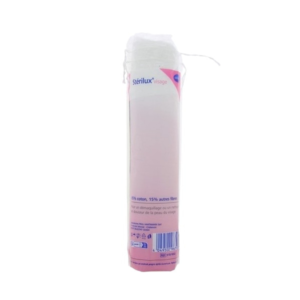 Le coton en disque dermatologique à démaquiller Stérilux de la marque Paul Hartmann permet une application facile et rapide des soins démaquillants sur le visage.