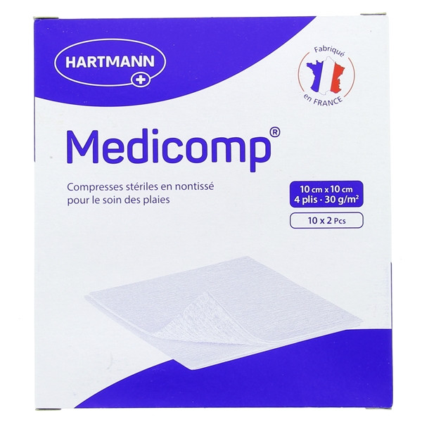 Medicomp Compresses stériles non tissé est un dispositif médical de 10 x 10 cm fabriqué par la marque Hartmann. Ce produit a été spécialement conçu pour prendre soin des petites plaies, même celles bénignes en apparence. Ces compresses favorisent une bonne cicatrisation vous aidant à traiter efficacement les blessures légères de toute la famille.