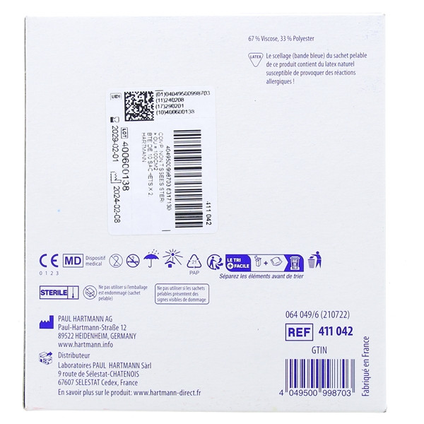 Pour que ces compresses on tissées puissent conserver leurs caractéristiques stériles, il est conseillé d’ouvrir le sachet de compresses Hartmann sans toucher le dispositif. Il est recommandé de nettoyer la lésion à l’aide de la compresse sèche ou imprégnée de produit nettoyant et/ou désinfectant.