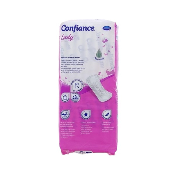 Le protège-slip Confiance Lady 1,5 G, produit par le laboratoire Hartmann, garantit une absorption optimale des fuites urinaires légères pour les femmes.