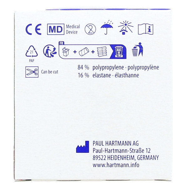 Grâce à un allongement supérieur à 120 %, elle conserve une tenue impeccable tout au long de son utilisation. Par ailleurs, la bande Lastopress de Hartmann ne contient pas de latex. Ainsi, elle convient parfaitement pour les personnes ayant des peaux sensibles.