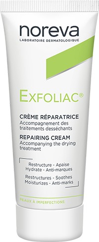 La crème réparatrice Exfoliac de Noreva est disponible en tube de 40ml.