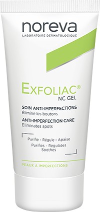 Disponible en tube de 30ml, Exfoliac NC Gel des laboratoires Noreva est un soin local pour peaux à tendance acnéique.