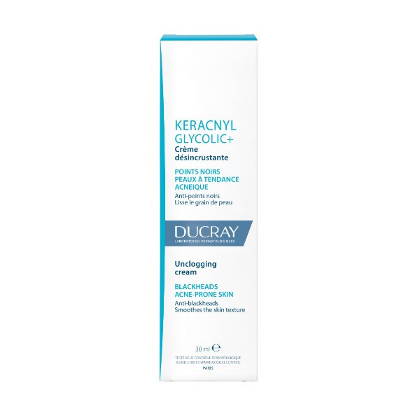 La crème Keracnyl Glycolic+ est une crème désincrustante pour le visage proposée par le laboratoire Ducray pour les peaux à tendance acnéique des adultes, adolescents et pré-adolescent à partir de 9 ans.