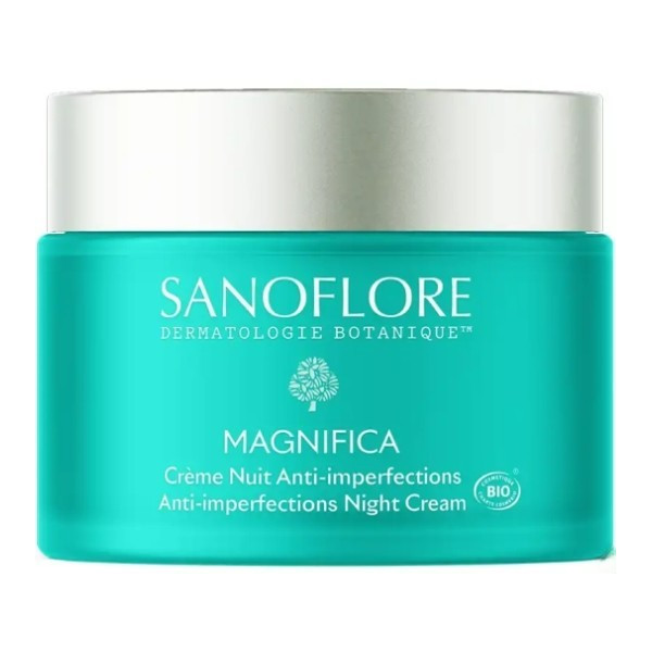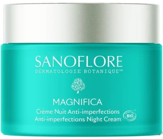 La Crème Nuit Anti-Imperfections Bio de la gamme Magnifica du laboratoire botanique Sanoflore est une crème de nuit pour les peaux mixtes à grasses et à tendance acnéique. Cette crème agit la nuit pour lisser, purifier, rééquilibrer et rafraîchir la peau.