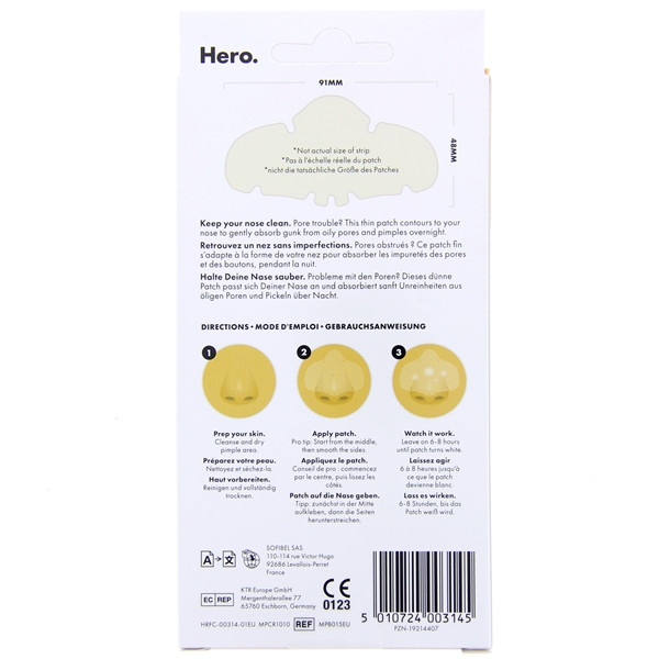Mighty Patch Nose Hero Cosmetics est un patch fin pour le nez qui absorbe les impuretés des pores et des boutons pendant la nuit. Ce patch s'adapte parfaitement à la forme du nez.
