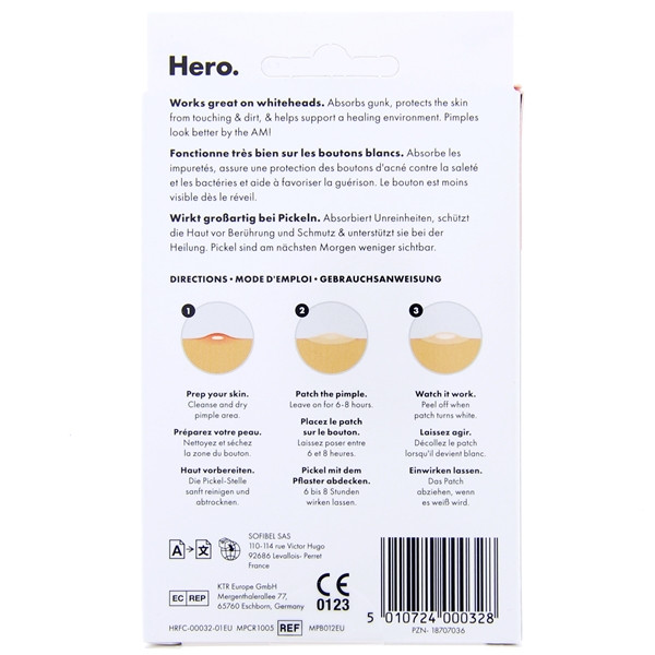 Mighty Patch The Original Hero Cosmetics est un patch anti-acné nuit. Ce patch absorbe les impuretés du bouton en 6 à 8 h, le protège contre les bactéries et la saleté et aide à favoriser sa guérison.