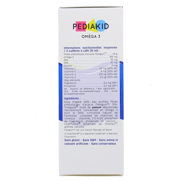 La formule du complément alimentaire PEDIAKID « Omega 3 » permet de stimuler la mémoire et d'améliorer la concentration. C'est un concentré de vitamines et minéraux, éléments essentiels également à la croissance de nos enfants.