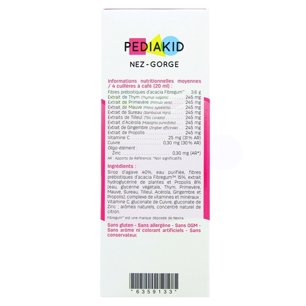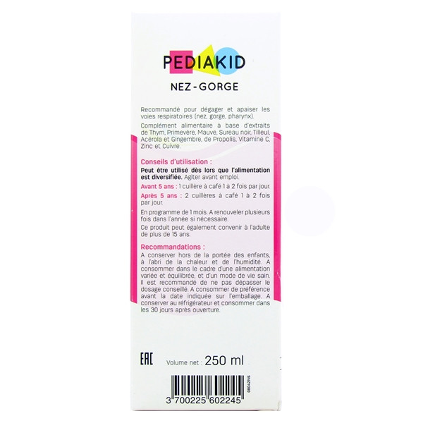 Pediakid Nez-Gorge est une solution spécialement conçue pour les enfants, visant à soulager les symptômes liés aux affections respiratoires. Sa formule unique combine des ingrédients naturels soigneusement sélectionnés pour favoriser le bien-être des petits.