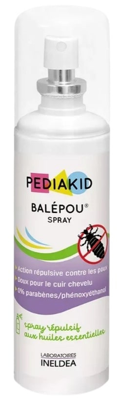 Pediakid Balépou Spray Répulsif Anti-Poux des laboratoires Ineldea est indiqué pour lutter contre la contamination des poux chez les enfants dès 3 ans. Ce spray répulsif à action préventive agit de manière douce et efficace.