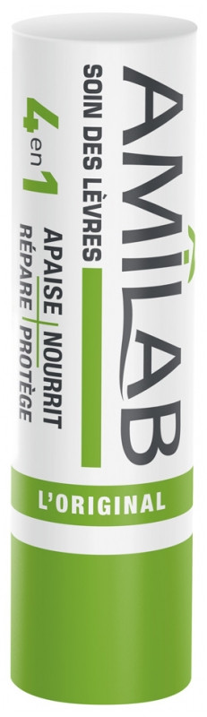 Amilab Stick Soin des Lèvres 4,7g est un baume spécialement formulé pour protéger, apaiser, nourrir et réparer les lèvres sensibles ou abîmées par les différentes agressions extérieures.