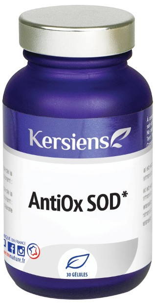 Kersiens Antiox SOD est un complément alimentaire qui aide à lutter contre le stress oxydatif (favorise les maladies chroniques et la présence importante de radicaux libres dans le corps), il va également aider à prévenir certaines maladies. Ce produit est adapté aux sportifs, seniors et personnes de plus de 30 ans.