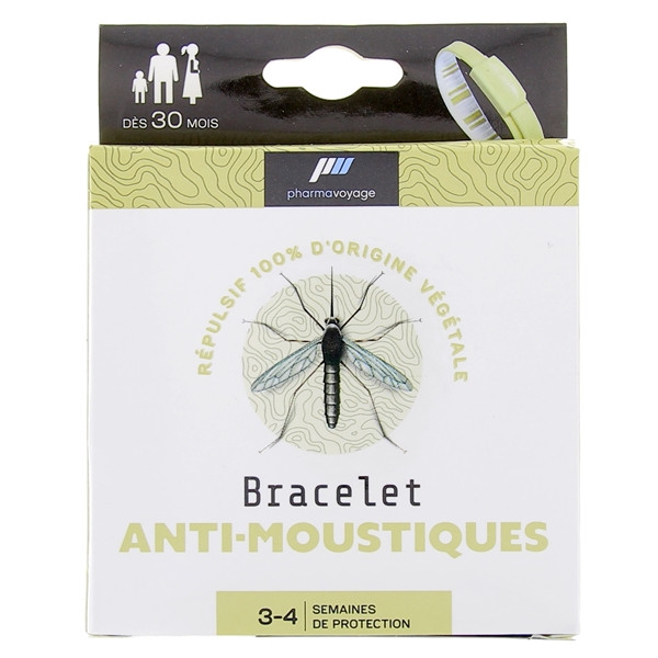 Pharmavoyage a développé un bracelet anti-moustiques waterproof imprégné d'un répulsif d'origine 100 % d'origine végétale, le géraniol, pour repousser efficacement les moustiques afin d'éviter les piqûres. Ce bracelet est réglable pour convenir aussi bien aux adultes qu'aux enfants dès 30 mois.