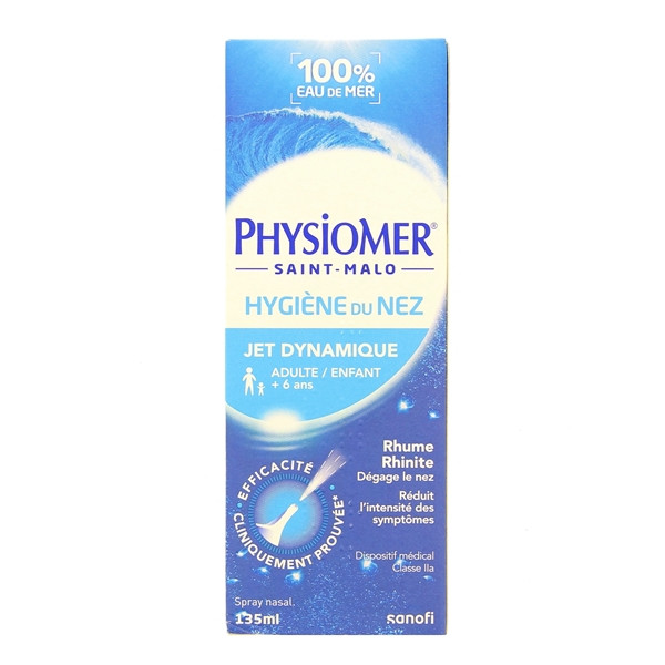 Luttez contre les nez bouchés en cas de rhume ou rhinite avec le spray nasal Physiomer Hygiène du Nez Jet Dynamique du laboratoire Sanofi. Pour adultes et enfants dès l'âge de 6 ans.