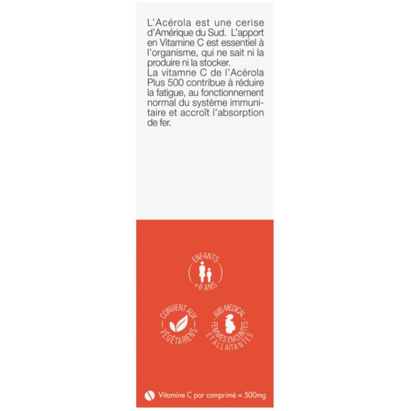 La vitamine C contenue dans le complément alimentaire Acerola Plus 500 du laboratoire Phyto-actif renforce les défenses immunitaires de l'organisme et contribue à maintenir forme et vitalité.