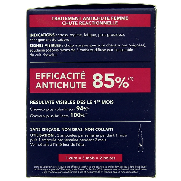 Les différents actifs qui composent Phytocyane traitement antichute Femme permettent de ralentir la chute et de renforcer les cheveux. De plus, ils rendent aux cheveux leur volume et brillance naturelle. Pour une chute réactionnelle causée par du stress, de la fatigue, un régime ou après une grossesse.