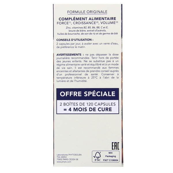 Disponible en offre spéciale de 2 boîtes de 120 capsules, soit 4 mois de traitement.
