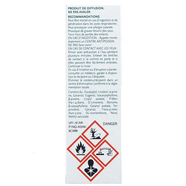 Complexe Diffuseur Respiration est déconseillé aux enfants de moins de 7 ans et aux femmes enceintes ou allaitantes. Ce produit est d’usage externe uniquement, il est contre indiqué de l’avaler ou de le mettre en contact avec les yeux ou les muqueuses. Il est recommandé de tenir ce dispositif dans un endroit frais.