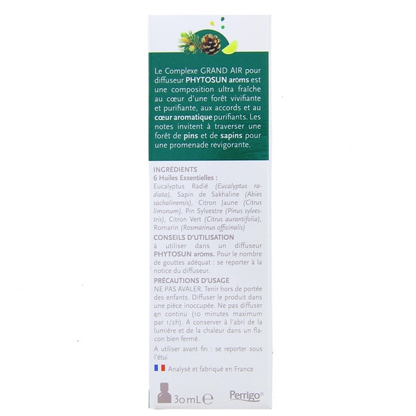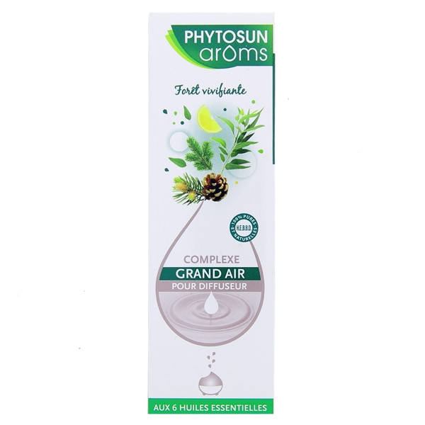 Le complexe Grand Air des laboratoires Phytosun Arôms rassemble les arômes de 6 huiles essentielles pour recréer un environnement naturel chez soi. Masque les mauvaises odeurs et rend l'air plus agréable à respirer.