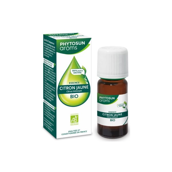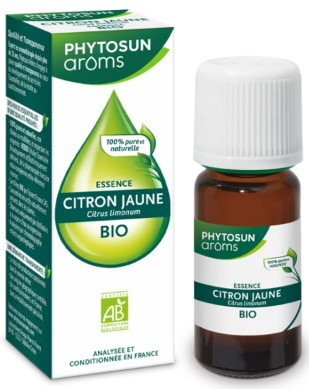 L'Essence de Citron Jaune Bio des laboratoires Phytosun Arôms est reconnue pour ses vertus sur le fonctionnement du foie et de l'appareil digestif. Elle est idéale pour soulager les troubles suite à un repas copieux et éviter les nausées (mal des transports).