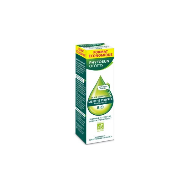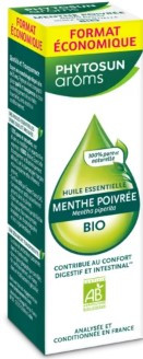 L'Huile Essentielle Menthe Poivrée Bio de la marque Phytosun Arôms s'utilise pour le confort digestif et le confort intestinal.