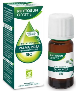L'Huile Essentielle Palma Rosa Bio du laboratoire Phytosun Arôms est reconnue pour ses propriétés anti-infectieuses.