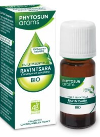 - HE de Ravintsara bio à prendre sur un support neutre, notamment sur un comprimé Phytosun Arôms.
