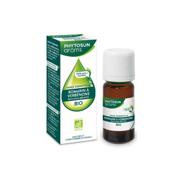 Huile Essentielle Romarin à Verbénone Bio est indiqué pour dégager les voies respiratoires et pour purifier et assainir la peau. Pour un adulte, il est conseillé d’utiliser 1 goutte de ce complément alimentaire, 3 fois par jour. L’idéal est de prendre cette huile sur un comprimé neutre Phytosun Arôms.