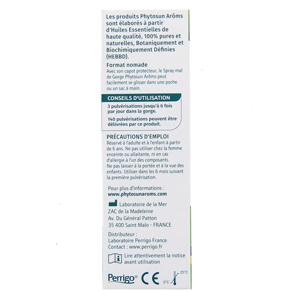 Le spray Mal de Gorge des laboratoires Phytosun Arôms est adapté à soulager les maux de gorge en cas d'angine, pharyngite et rhinopharyngite. Sa formule, composée d’Huiles essentielles 100 % pures et naturelles, contient aussi du miel et de la propolis reconnus pour leurs propriétés adoucissantes.