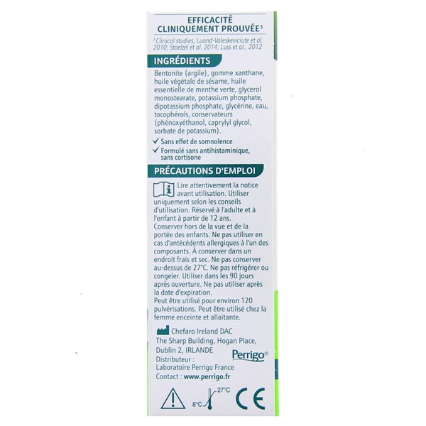 Spray Nasal Allergie est réservé à l’adulte et à l’enfant de plus de 12 ans. Il est conseillé de conserver ce dispositif hors de la portée et de la vue des enfants. Ce Spray Nasal Allergie est contre indiqué aux personnes allergiques à l’un de ces composants.