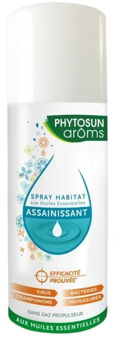 Le Spray Habitat Assainissant aux huiles essentielles permet de purifier et assainir l'atmosphère d’une pièce. Avec une efficacité prouvée, il contribue à la lutte contre les acariens, les bactéries, les virus, les champignons et les moisissures.