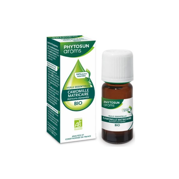 L'Huile Essentielle Camomille Matricaire Bio du laboratoire Phytosun Arôms est reconnue pour ses propriétés anti-inflammatoires et anti-allergiques.