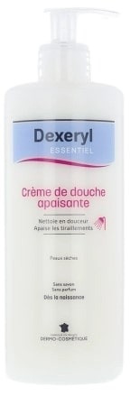 La Crème de douche apaisante Dexeryl ESSENTIEL est un produit d’hygiène quotidien. Il s’agit d’une crème lavante pour le visage et le corps. Sa formule douce et apaisante convient aux peaux sèches, y compris celles à tendance atopique et sujettes à des tiraillements.