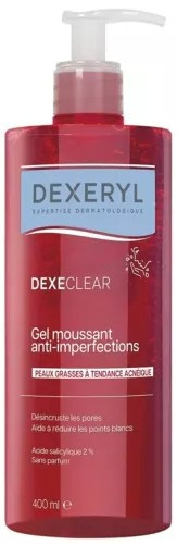 Dexeryl Dexeclear Gel Moussant Anti-Imperfections a été spécialement développé pour les peaux grasses à tendance acnéique. Ce gel permet de désincruster les pores et aide à réduire les point blancs.