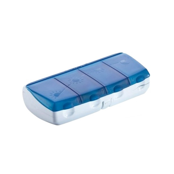 Boite à pilule contenant 4 cases pour 4 prises (matin, midi, soir, coucher).