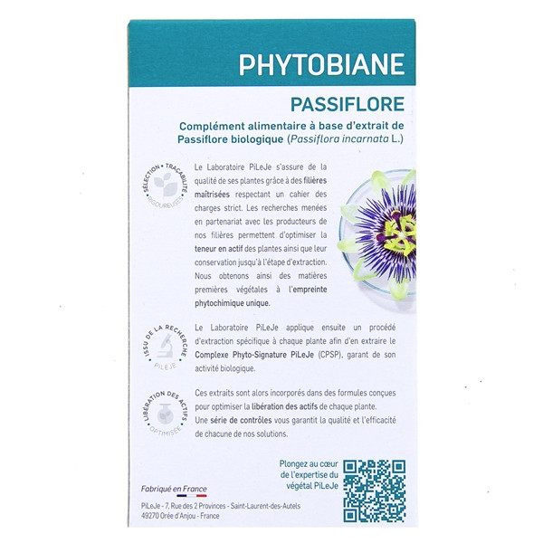 - La durée de la complémentation avec Phytobiane Passiflore est de 15 à 30 jours selon la posologie prescrite.